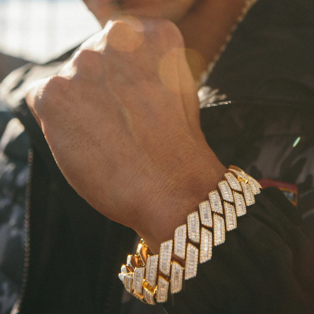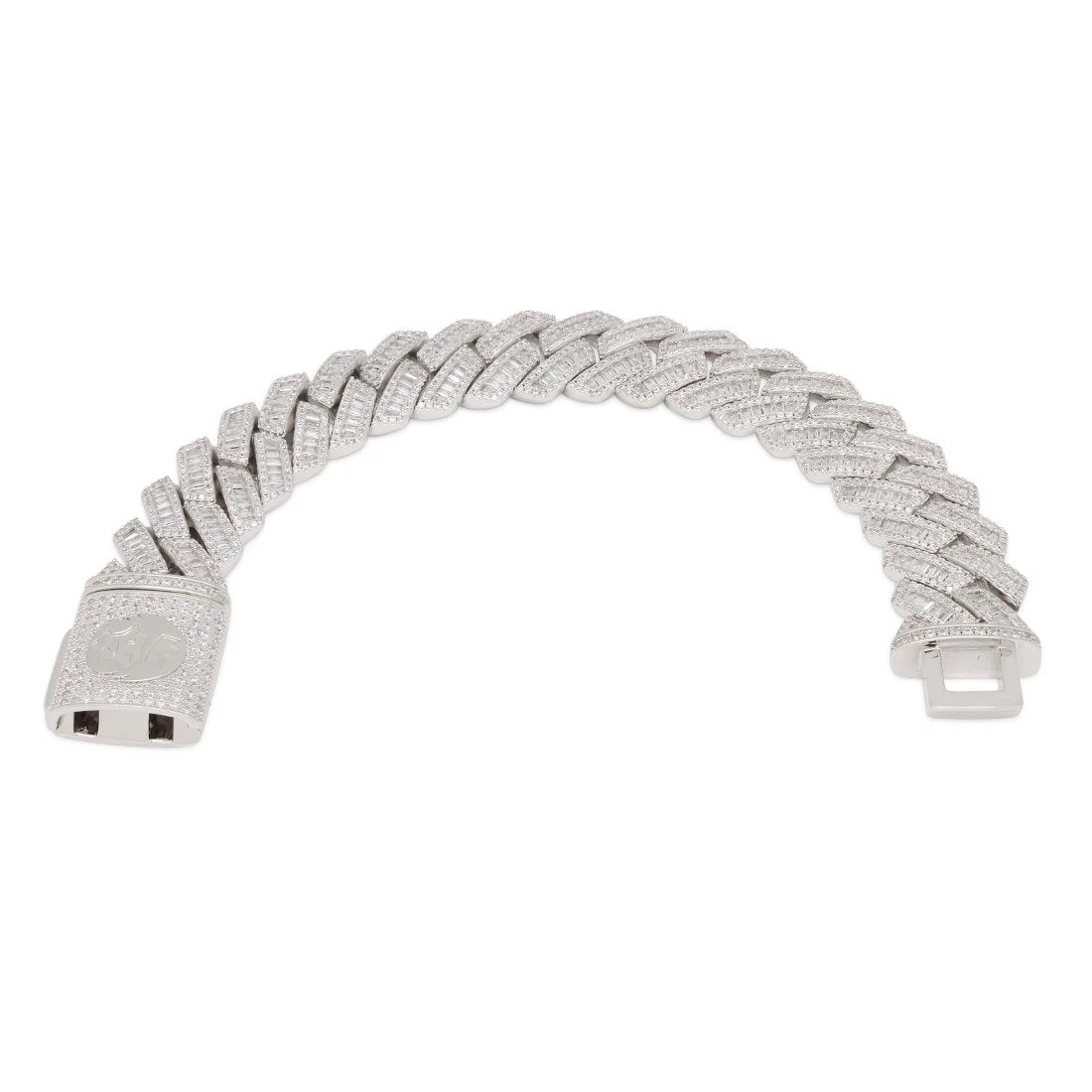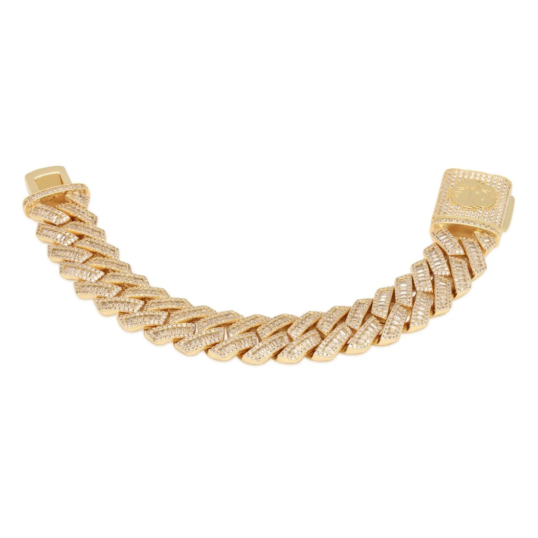 Diamond-cut links are straight, flatter, and sharper. King Ice takes full advantage of this with a full row of Baguette stones surrounded by Ice in each solid-back link.
