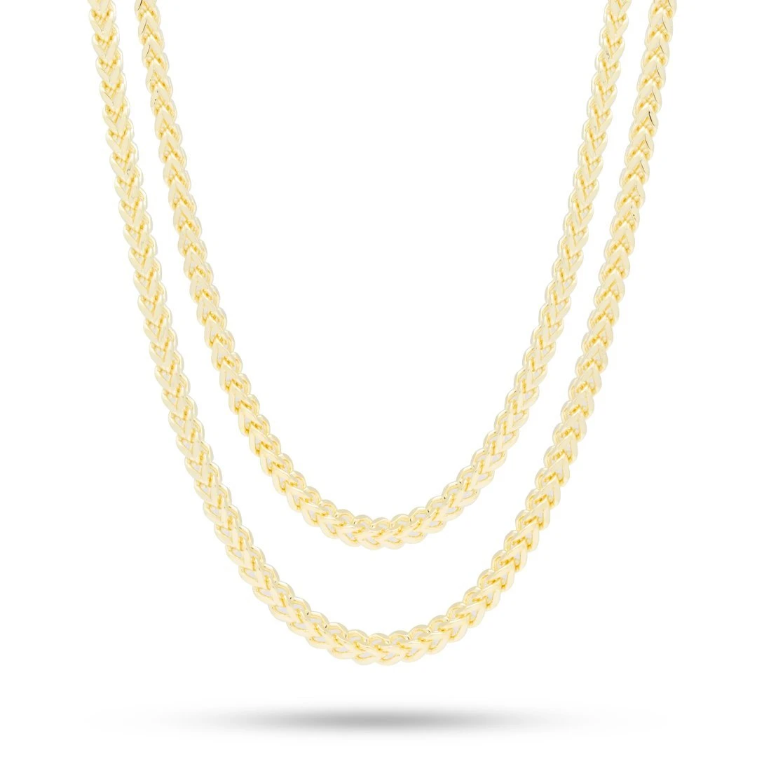 Even though it has a subtle look, the 5mm 14K Gold Stainless Steel Franco Choker Set pays tribute to hip-hop culture. The 18″ and 20″ choker set is plated with a 14K Gold finish for that fresh look and feel.