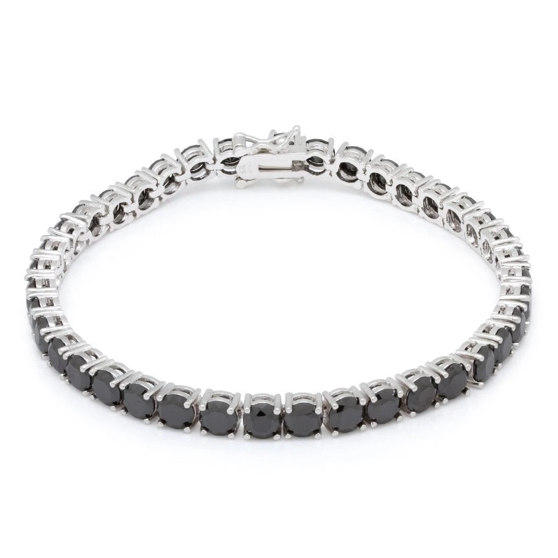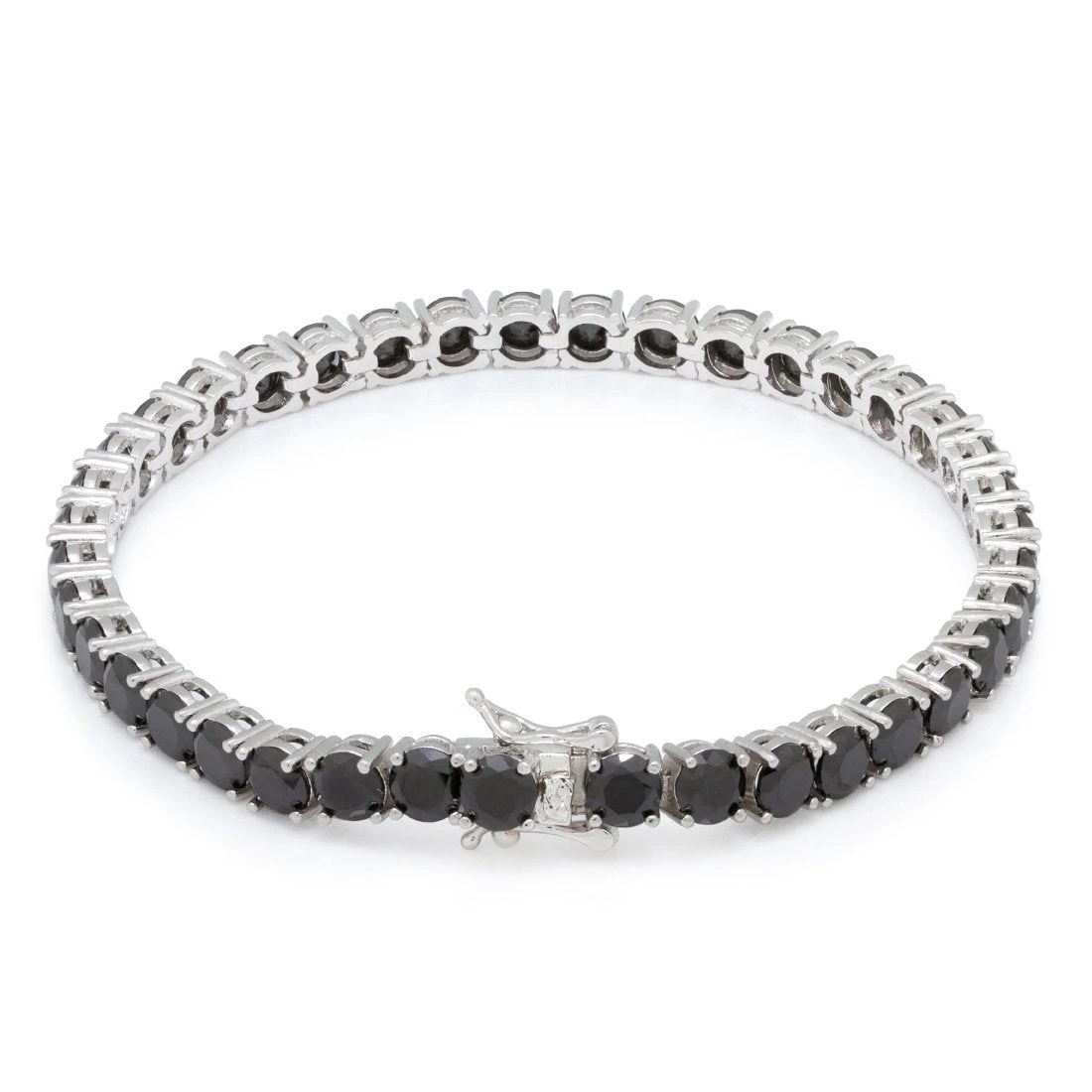 Molded after iconic tennis charms, comes the Single Row Onyx Tennis Bracelet. Each bracelet features handset VVS Diamond Simulate stones and is available in 14K Gold plating or White Gold Plating.