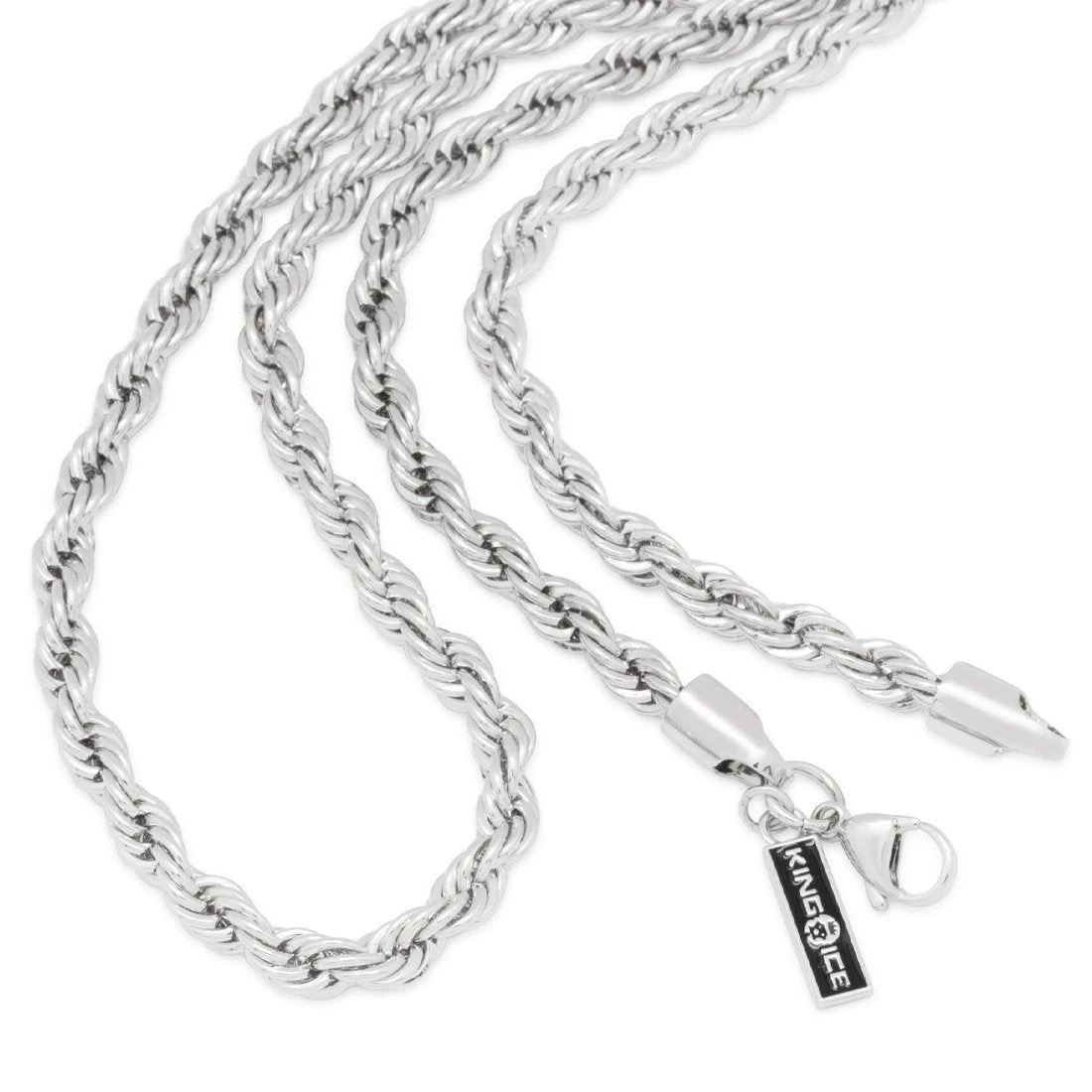 Rock the new 5mm Rope Choker Set like a member of RUN-DMC. back in the ’80s. The new set provides an 18″ and 20″ rope chain choker for the perfect length match. Plated in 14K Gold, the stainless steel chokers have a lobster clasp for secure wear.
