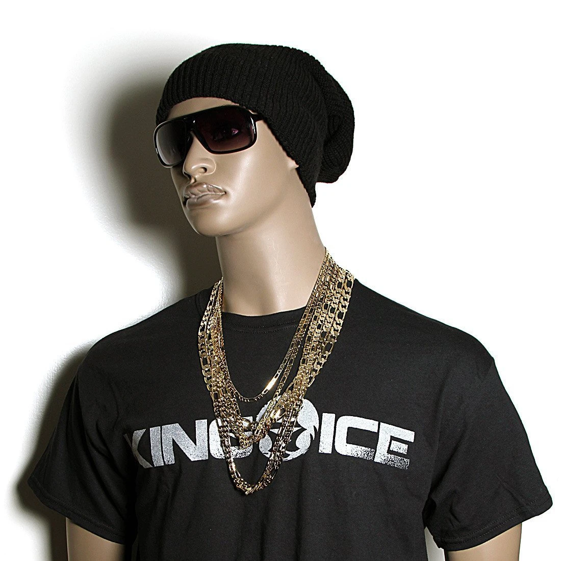 This brass Figaro chain features 14K gold plating and a box clasp closure. Laser engraved King Ice logo on clasp.