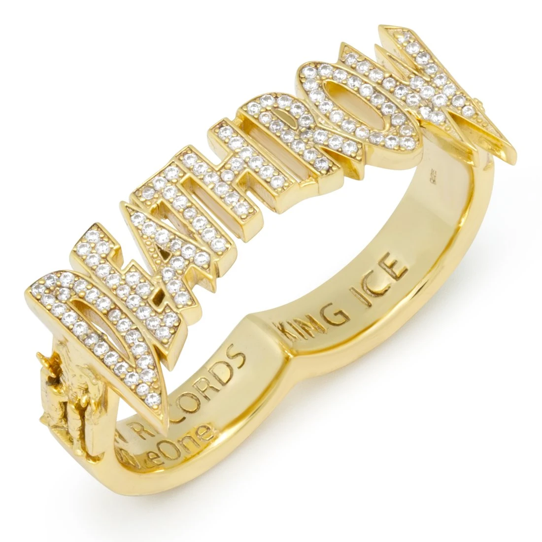 Iced, polished, and spanning half of your hand, the Death Row Two-Finger Ring is fully detailed to make a lasting impression.Â