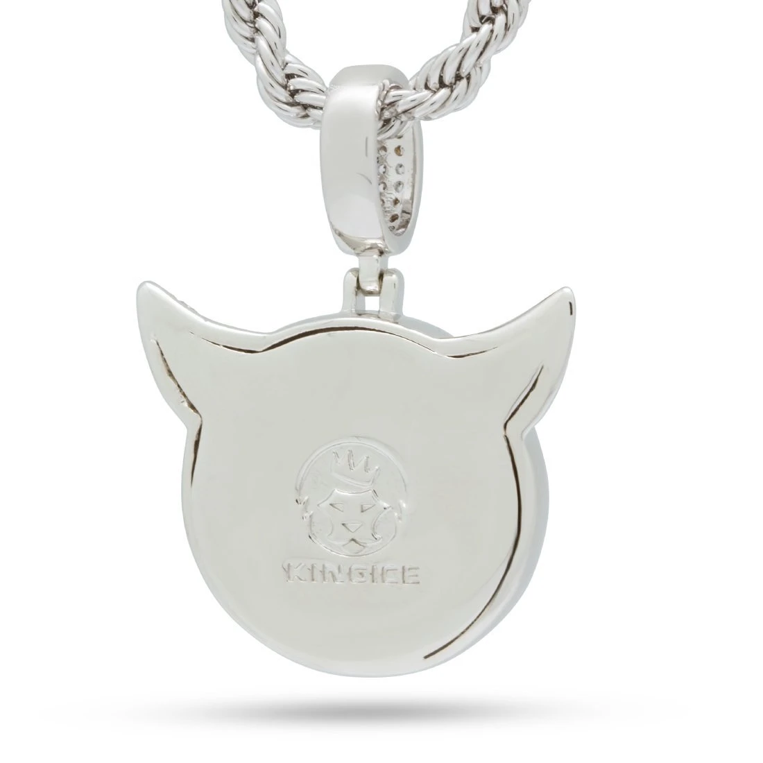 Our classic devil emoji is now available as a stainless steel King Ice necklace. Each necklace is iced with colored round and trillion cut VVS Diamond Simulates to detail the infamous emoji expression.