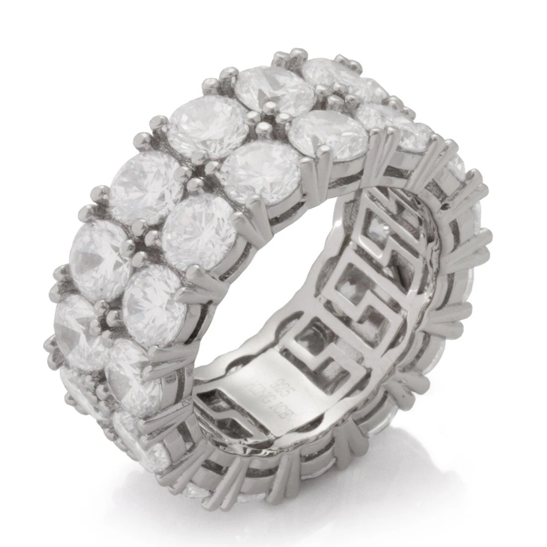 Made from solid .925 Sterling Silver, the Two-Row Ring provides a heavy, iconic look. Each ring uses dual, 3mm stones to create a vibrant display of the King Ice signature look.
