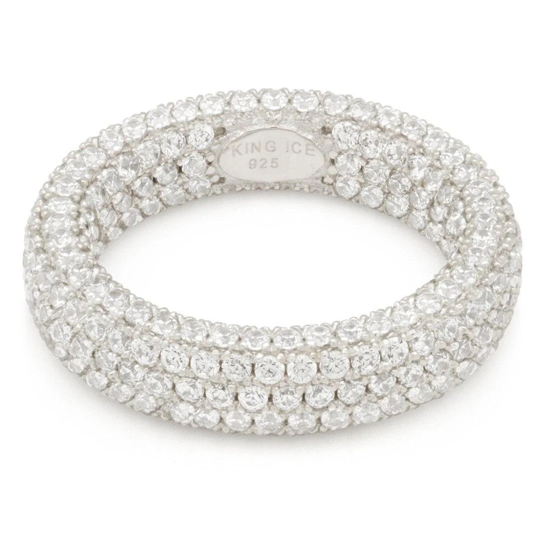 Solid and sturdy .925 sterling silver, the Eternity ring features a solid, eternity loop that provides simple, minimalist look. Each ring comes covered in over 300 handset VVS Diamond Simulate stones to provide a stunning display.