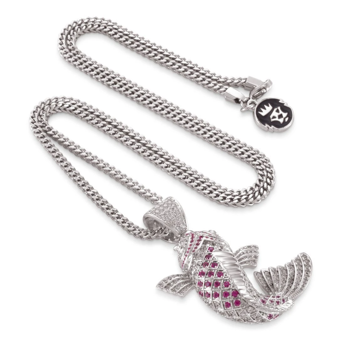 Bring prosperity to your business with this Koi Fish, while the red portions of Koi represent love. Paired with a 24″ 2.5mm Franco Chain.