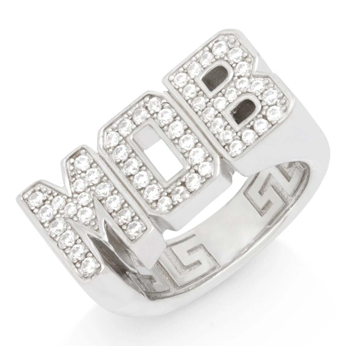 The M.O.B. (Money Over B*tches) is for those on that grind and has no time for distractions. Made from solid .925 sterling silver and available in 14K gold and white gold plating, the MOB ring is a popular choice for hip hop jewelry for its vibrant look and unsubtle meaning.