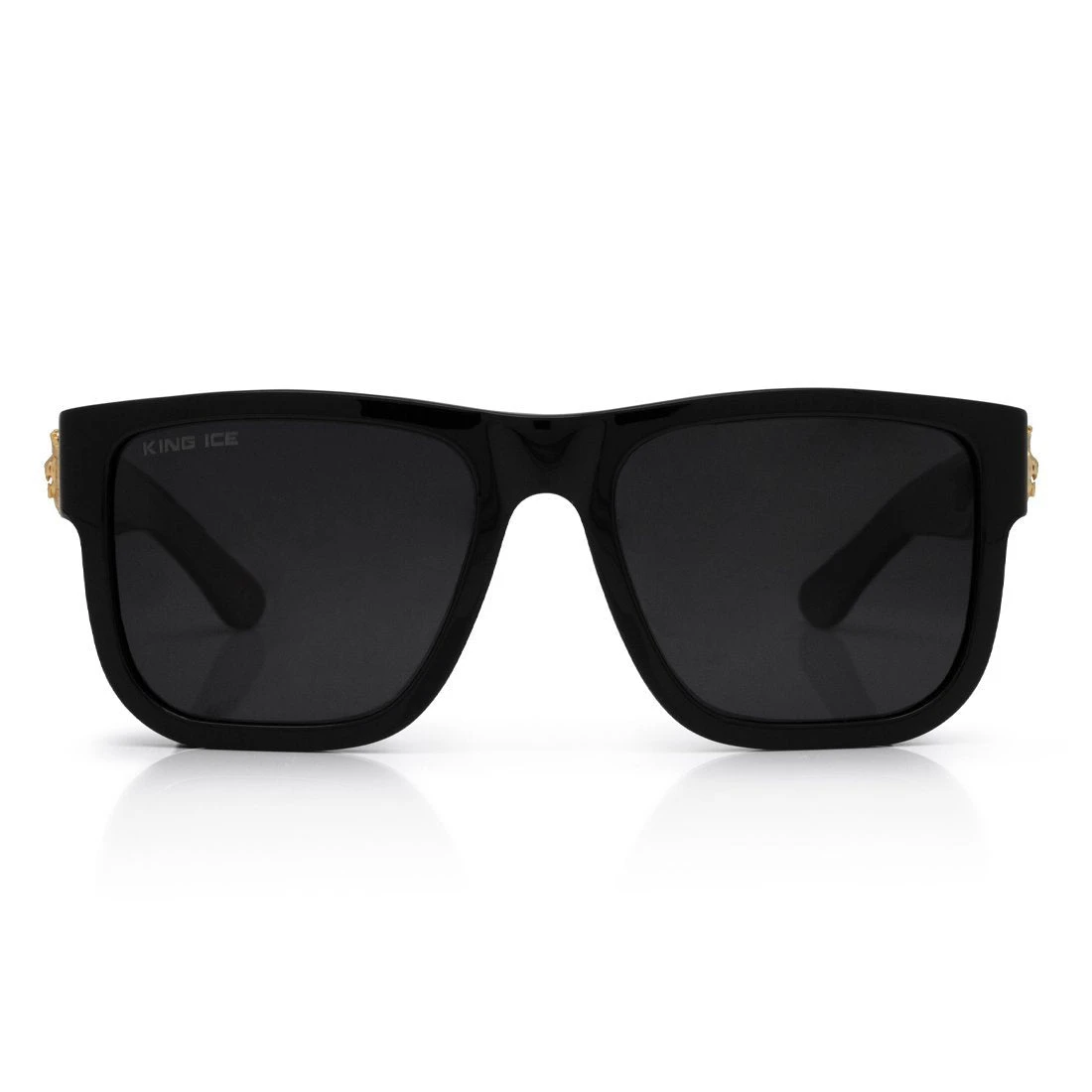 The Lion Head Shades with polarized black lenses are perfect for any sunny day because they can easily be dressed up or down. The front temple of the frame has a gold 3D King Ice lion head logo, while the temple tip has a flat King Ice logo. All of the details on the sunglasses are plated with 14K Gold.