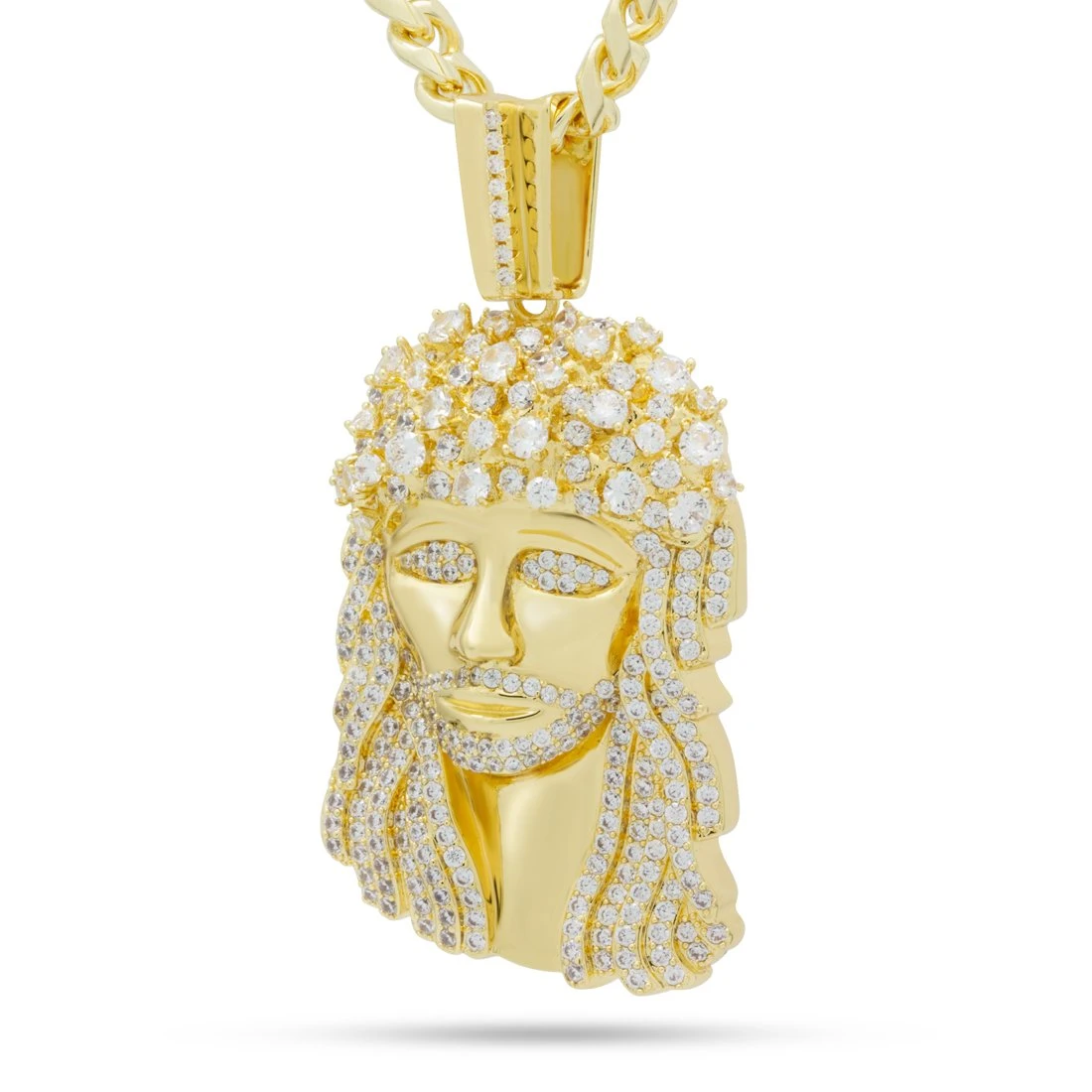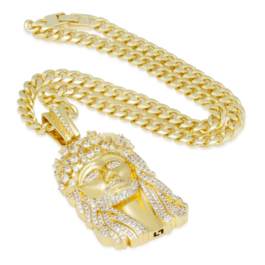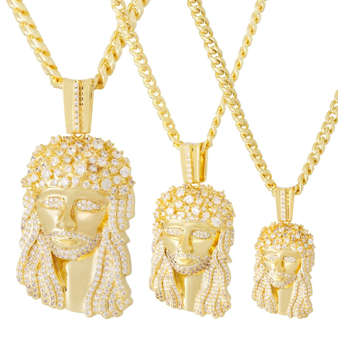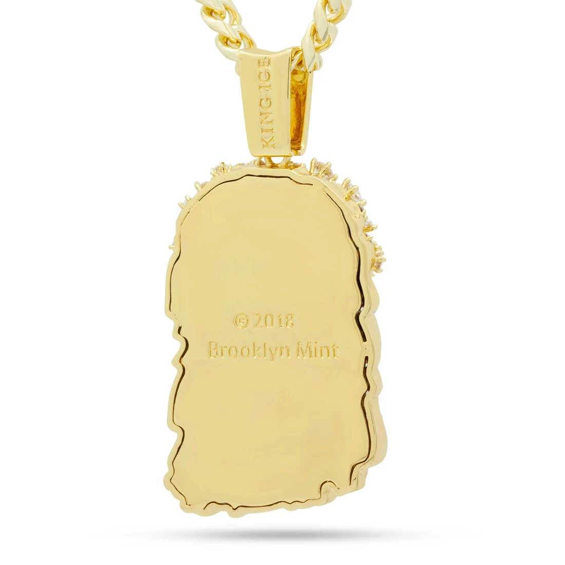 Inspired by the original design, the Biggie Jesus necklace is a recreation of the Jesus piece he used to wear. The Biggie Jesus piece comes in three sizes that best fits your style of street wear. In addition, each pendant is finished with 14K Gold plating or white gold plating and VVS Diamond Simulate stones for a high quality look and feel.