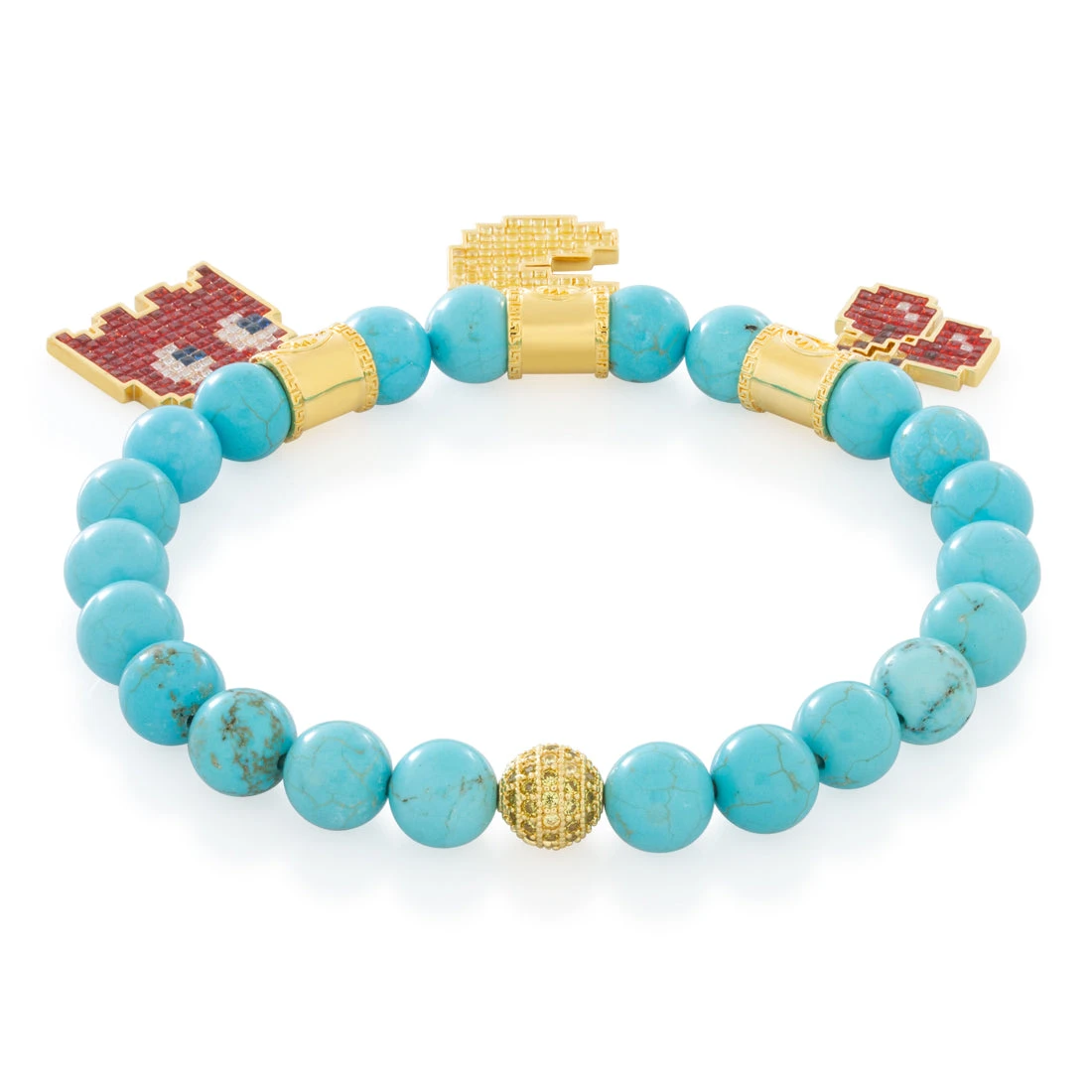 Easy to learn but difficult to master, PAC-MAN is an iconic arcade game that has become a legendary piece of pop culture. The genuine gemstone band stretches to fit any wrist that showcases the three charms beautifully. Each charm, Blinky, PAC-MAC, and Cherries, has gone through an extensive design process to achieve the beautiful 8-bit inspired design with stones that follow the same geometric pixel pattern of the original video game.