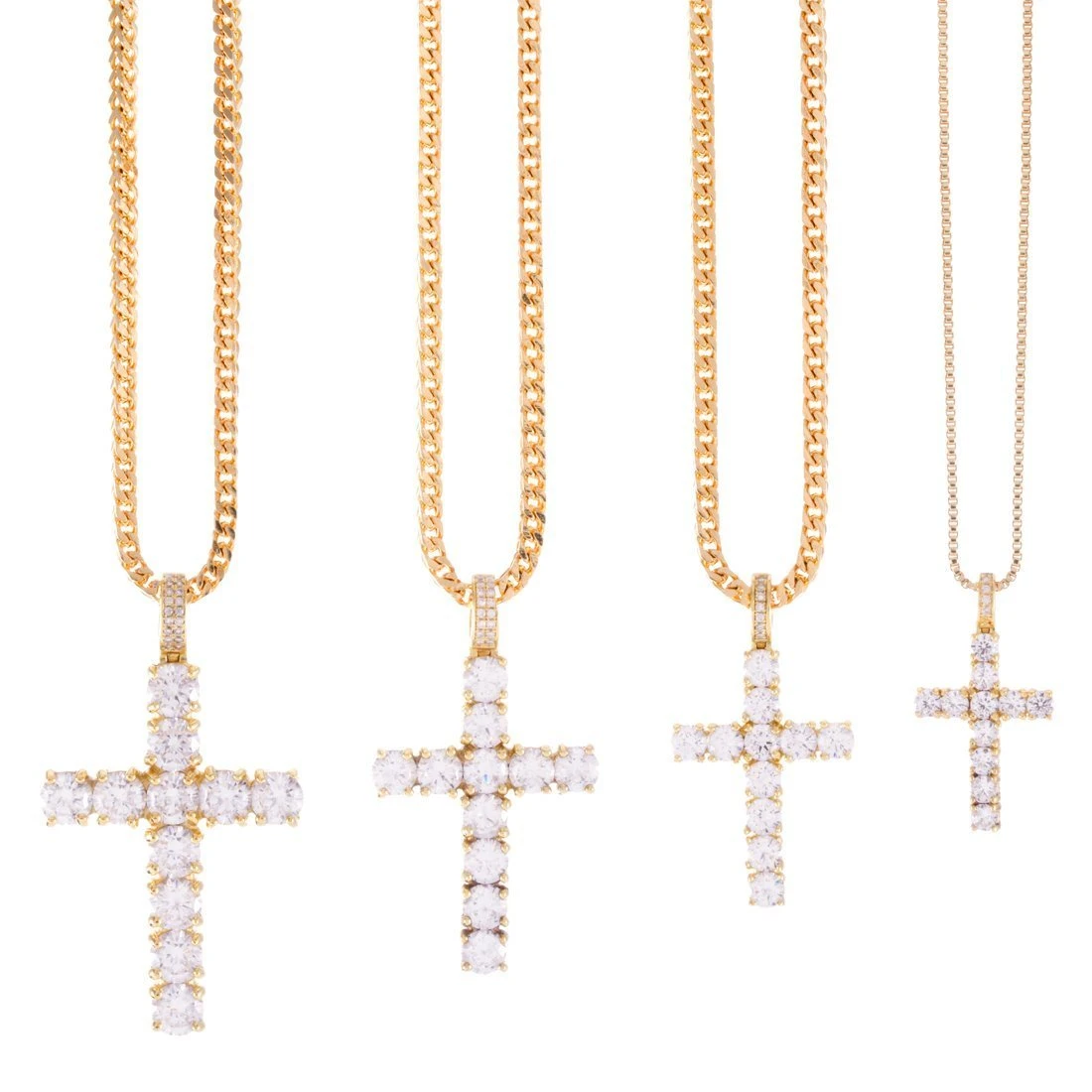 Handcrafted, carved and etched to perfection, this piece is made from .925 Sterling Silver. Each piece uses handset VVS Diamond Simulate stones. The 1.4″ is paired with a 1mm 20″ box chain and the 1.7″, 1.8″, and 2.2″ are paired with a 2.5mm 20″ franco chain.