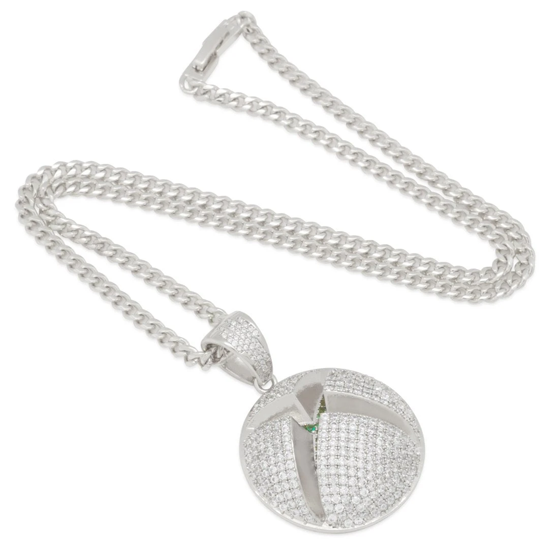 The XBOX logo has seen many iterations in its time. The most recognizable, the sphere logo, introduced with the Xbox 360. As only King Ice can, we introduce a fully iced 3D sphere pendant complete with green stones in the iconic “chasm” shape.